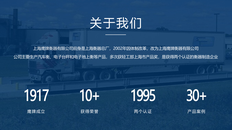 more+上海鷹牌衡器有限公司是上海衡器總廠轉(zhuǎn)制的企業(yè),前身是上海衡器總廠,創(chuàng)建于1917年,是地磅等衡器設計、制造廠家,主營電子地磅、電子秤以及地磅維修,2002年因體制改革,改為上海鷹牌衡器有限公司!